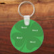 A keychain with a leprechaun carrying a pot of gold with a rainbow behind him. You can edit or personalize the text. On the back is a four leaf clover. Matching products available.