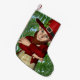 Perfect! Exactly what I ordered! I uploaded a picture of my blue chow, and the screen print was incredible. the back side of the stocking was the red and black checkered print. my puppy's name was also printed on the cuff of the stocking. PERFECT! Highly recommend this product! My puppy's name was screen printed onto the cuff of the stocking, the font was perfect!