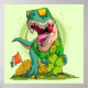 T-Rex dressed as a leprechaun with his pot of gold for St. Patrick's Day.