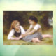 The warm autumn sun dappled through the leaves of the hazelnut tree, casting dancing shadows on the forest floor. Two young girls, Elise and Juliette, sat beneath its branches, a small pile of golden nuts nestled amongst the fallen leaves. - Elise, the elder of the two, leaned against the rough bark of the tree, a mischievous glint in her eyes. She held a handful of nuts teasingly above Juliette's head. "Try to catch them, petite souris!" she chirped, scattering the nuts with a delighted giggle. - Juliette, a whirlwind of motion, chased after the falling nuts, her laughter echoing through the woods. She scooped up a handful, her face flushed with exertion and delight. "You're impossible, Elise!" she exclaimed, her voice breathless. - Elise grinned, her eyes crinkling at the corners. "That's the idea, ma petite!" she retorted, tossing a few more nuts into the air. - They tumbled and rolled amongst the leaves, their laughter mingling with the gentle rustling of the trees. For a moment, the world seemed to shrink to just the two of them, lost in their own private game. - Juliette, catching her breath, looked around at the dappled sunlight filtering through the leaves. "It's so beautiful here," she sighed contentedly. "I wish we could stay here forever." - Elise nodded, gazing up at the canopy of leaves. "Me too," she admitted. "It's like a secret garden." - They fell silent, content in the companionship of each other and the peaceful tranquility of the woods. Elise, ever the dreamer, began to imagine what they would do with their treasures. "Perhaps we could roast them over the fire," she mused, "and tell stories all evening." - Juliette's eyes widened. "Or maybe we could make a necklace for Grand-mère," she suggested, her voice filled with excitement. "She loves hazelnut necklaces." - As the sun began to dip below the horizon, casting long shadows across the forest floor, the girls reluctantly gathered their nuts and began to make their way home. They walked hand-in-hand, their laughter fading into the distance, leaving behind a trail of golden leaves and the lingering scent of autumn. - The woods, once alive with their playful chatter, returned to its peaceful slumber, the only sound the gentle whisper of the wind through the trees. But the memory of their laughter, like the scent of woodsmoke, lingered long after they were gone, a reminder of the simple joys of childhood and the enduring magic of a shared secret. - Les Noisettes or The Nut Gatherers is an 1882 oil painting by the French artist William-Adolphe Bouguereau. This work is in the public domain in its country of origin and other countries and areas where the copyright term is the author's life plus 100 years or fewer.