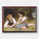 The warm autumn sun dappled through the leaves of the hazelnut tree, casting dancing shadows on the forest floor. Two young girls, Elise and Juliette, sat beneath its branches, a small pile of golden nuts nestled amongst the fallen leaves. - Elise, the elder of the two, leaned against the rough bark of the tree, a mischievous glint in her eyes. She held a handful of nuts teasingly above Juliette's head. "Try to catch them, petite souris!" she chirped, scattering the nuts with a delighted giggle. - Juliette, a whirlwind of motion, chased after the falling nuts, her laughter echoing through the woods. She scooped up a handful, her face flushed with exertion and delight. "You're impossible, Elise!" she exclaimed, her voice breathless. - Elise grinned, her eyes crinkling at the corners. "That's the idea, ma petite!" she retorted, tossing a few more nuts into the air. - They tumbled and rolled amongst the leaves, their laughter mingling with the gentle rustling of the trees. For a moment, the world seemed to shrink to just the two of them, lost in their own private game. - Juliette, catching her breath, looked around at the dappled sunlight filtering through the leaves. "It's so beautiful here," she sighed contentedly. "I wish we could stay here forever." - Elise nodded, gazing up at the canopy of leaves. "Me too," she admitted. "It's like a secret garden." - They fell silent, content in the companionship of each other and the peaceful tranquility of the woods. Elise, ever the dreamer, began to imagine what they would do with their treasures. "Perhaps we could roast them over the fire," she mused, "and tell stories all evening." - Juliette's eyes widened. "Or maybe we could make a necklace for Grand-mère," she suggested, her voice filled with excitement. "She loves hazelnut necklaces." - As the sun began to dip below the horizon, casting long shadows across the forest floor, the girls reluctantly gathered their nuts and began to make their way home. They walked hand-in-hand, their laughter fading into the distance, leaving behind a trail of golden leaves and the lingering scent of autumn. - The woods, once alive with their playful chatter, returned to its peaceful slumber, the only sound the gentle whisper of the wind through the trees. But the memory of their laughter, like the scent of woodsmoke, lingered long after they were gone, a reminder of the simple joys of childhood and the enduring magic of a shared secret. - Les Noisettes or The Nut Gatherers is an 1882 oil painting by the French artist William-Adolphe Bouguereau. This work is in the public domain in its country of origin and other countries and areas where the copyright term is the author's life plus 100 years or fewer.