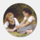 The warm autumn sun dappled through the leaves of the hazelnut tree, casting dancing shadows on the forest floor. Two young girls, Elise and Juliette, sat beneath its branches, a small pile of golden nuts nestled amongst the fallen leaves. - Elise, the elder of the two, leaned against the rough bark of the tree, a mischievous glint in her eyes. She held a handful of nuts teasingly above Juliette's head. "Try to catch them, petite souris!" she chirped, scattering the nuts with a delighted giggle. - Juliette, a whirlwind of motion, chased after the falling nuts, her laughter echoing through the woods. She scooped up a handful, her face flushed with exertion and delight. "You're impossible, Elise!" she exclaimed, her voice breathless. - Elise grinned, her eyes crinkling at the corners. "That's the idea, ma petite!" she retorted, tossing a few more nuts into the air. - They tumbled and rolled amongst the leaves, their laughter mingling with the gentle rustling of the trees. For a moment, the world seemed to shrink to just the two of them, lost in their own private game. - Juliette, catching her breath, looked around at the dappled sunlight filtering through the leaves. "It's so beautiful here," she sighed contentedly. "I wish we could stay here forever." - Elise nodded, gazing up at the canopy of leaves. "Me too," she admitted. "It's like a secret garden." - They fell silent, content in the companionship of each other and the peaceful tranquility of the woods. Elise, ever the dreamer, began to imagine what they would do with their treasures. "Perhaps we could roast them over the fire," she mused, "and tell stories all evening." - Juliette's eyes widened. "Or maybe we could make a necklace for Grand-mère," she suggested, her voice filled with excitement. "She loves hazelnut necklaces." - As the sun began to dip below the horizon, casting long shadows across the forest floor, the girls reluctantly gathered their nuts and began to make their way home. They walked hand-in-hand, their laughter fading into the distance, leaving behind a trail of golden leaves and the lingering scent of autumn. - The woods, once alive with their playful chatter, returned to its peaceful slumber, the only sound the gentle whisper of the wind through the trees. But the memory of their laughter, like the scent of woodsmoke, lingered long after they were gone, a reminder of the simple joys of childhood and the enduring magic of a shared secret. - Les Noisettes or The Nut Gatherers is an 1882 oil painting by the French artist William-Adolphe Bouguereau. This work is in the public domain in its country of origin and other countries and areas where the copyright term is the author's life plus 100 years or fewer.