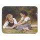 The warm autumn sun dappled through the leaves of the hazelnut tree, casting dancing shadows on the forest floor. Two young girls, Elise and Juliette, sat beneath its branches, a small pile of golden nuts nestled amongst the fallen leaves. - Elise, the elder of the two, leaned against the rough bark of the tree, a mischievous glint in her eyes. She held a handful of nuts teasingly above Juliette's head. "Try to catch them, petite souris!" she chirped, scattering the nuts with a delighted giggle. - Juliette, a whirlwind of motion, chased after the falling nuts, her laughter echoing through the woods. She scooped up a handful, her face flushed with exertion and delight. "You're impossible, Elise!" she exclaimed, her voice breathless. - Elise grinned, her eyes crinkling at the corners. "That's the idea, ma petite!" she retorted, tossing a few more nuts into the air. - They tumbled and rolled amongst the leaves, their laughter mingling with the gentle rustling of the trees. For a moment, the world seemed to shrink to just the two of them, lost in their own private game. - Juliette, catching her breath, looked around at the dappled sunlight filtering through the leaves. "It's so beautiful here," she sighed contentedly. "I wish we could stay here forever." - Elise nodded, gazing up at the canopy of leaves. "Me too," she admitted. "It's like a secret garden." - They fell silent, content in the companionship of each other and the peaceful tranquility of the woods. Elise, ever the dreamer, began to imagine what they would do with their treasures. "Perhaps we could roast them over the fire," she mused, "and tell stories all evening." - Juliette's eyes widened. "Or maybe we could make a necklace for Grand-mère," she suggested, her voice filled with excitement. "She loves hazelnut necklaces." - As the sun began to dip below the horizon, casting long shadows across the forest floor, the girls reluctantly gathered their nuts and began to make their way home. They walked hand-in-hand, their laughter fading into the distance, leaving behind a trail of golden leaves and the lingering scent of autumn. - The woods, once alive with their playful chatter, returned to its peaceful slumber, the only sound the gentle whisper of the wind through the trees. But the memory of their laughter, like the scent of woodsmoke, lingered long after they were gone, a reminder of the simple joys of childhood and the enduring magic of a shared secret. - Les Noisettes or The Nut Gatherers is an 1882 oil painting by the French artist William-Adolphe Bouguereau. This work is in the public domain in its country of origin and other countries and areas where the copyright term is the author's life plus 100 years or fewer.