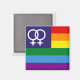 Lesbian pride variant of the gay pride rainbow flag with the double-Venus symbol.