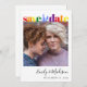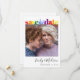A unique save the date for your special day, this modern announcement features "save the date" in bold typography in the colors of the gay pride rainbow. Add your photo, first names in a trendy script and wedding date on the front. On the reverse, add your full names in the same trendy script, and your wedding date, location and website in simple minimal typography.