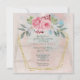 Delicate pink watercolor roses enclosed in a gold geometric frame