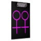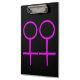 This awesome clipboard is designed for lesbians. It features two pink female symbols standing side by side. The background is black