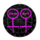 This awesome dartboard is designed for lesbians. It features two pink female symbols standing side by side. The background is black and there is customizable pink text inside each of the symbols to put names.