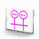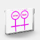 This awesome acrylic decoration is designed for lesbians. It features two pink female symbols standing side by side. The background is black and there is customizable pink text inside each of the symbols to put names.