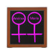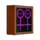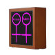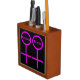 This awesome desk organizer is designed for lesbians. It features two pink female symbols standing side by side. The background is black and there is customizable pink text inside each of the symbols to put names.