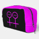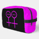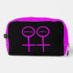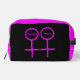 This awesome cosmetic bag is designed for lesbians. It features two pink female symbols standing side by side. The background is black and there is customizable pink text inside each of the symbols to put names.