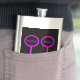 This awesome flask is designed for lesbians. It features two pink female symbols standing side by side. The background is black and there is customizable pink text inside each of the symbols to put names.