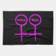 This awesome kitchen towel is designed for lesbians. It features two pink female symbols standing side by side. The background is black and there is customizable pink text inside each of the symbols to put names.