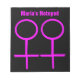 This awesome notepad is designed for lesbians. It features two pink female symbols standing side by side. The background is black and there is customizable pink text at the top allowing you to personalize this notepad.