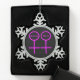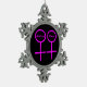 This awesome ornament is designed for lesbians. It features two pink female symbols standing side by side. The background is black and there is customizable pink text inside each of the symbols to put names.