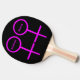 This awesome Ping Pong Paddle is designed for lesbians. It features two pink female symbols standing side by side. The background is black and there is customizable pink text inside each of the symbols to put names.