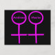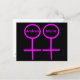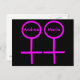 This lovely postcard is designed for lesbians. It features two pink female symbols standing side by side. The background is black and there is customizable pink text inside each of the symbols to put names.