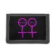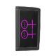 This awesome wallet is designed for lesbians. It features two pink female symbols standing side by side. The background is black and there is customizable pink text inside each of the symbols to put names.