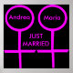This lovely poster is designed for lesbians. It features two pink female symbols standing side by side. The background is black and there is customizable pink text inside each of the symbols to put names. It says "just married" in pink text between the two symbols. This poster is for putting up at wedding receptions and parties to celebrate the marriage of a lesbian couple. The poster is available in several different sizes, this being the largest.