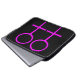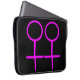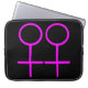 This awesome laptop bag is designed for lesbians. It features two pink female symbols standing side by side. The background is black.