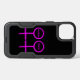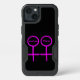 This awesome phone case is designed for lesbians. It features two pink female symbols standing side by side. The background is black and there is customizable pink text inside each of the symbols to put names.