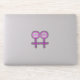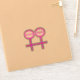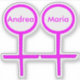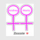 This awesome shaped sticker is designed for lesbians. It features two pink female symbols standing side by side. The background is black and there is customizable pink text inside each of the symbols to put names.