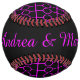 This awesome softball is designed for lesbians. It features two pink female symbols standing side by side. The background is black. There is customizable pink text to put names.