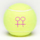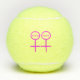 This awesome set of tennis balls is designed for lesbians. It features two pink female symbols standing side by side. The background is black and there is customizable pink text inside each of the symbols to put names.