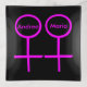 This awesome trinket tray is designed for lesbians. It features two pink female symbols standing side by side. The background is black and there is customizable pink text inside each of the symbols to put names.