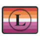Add your own initial to this beautiful Lesbian flag (2018) monogram design specifically made for a tow hitch cover.