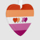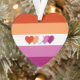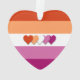 Heart Ornament pillow with hearts in the colors of the lesbian pride flag, with lesbian pride flag in the background