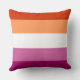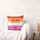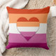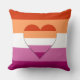 Throw pillow with an image of a heart in the colors of the lesbian pride flag, on a background with the lesbian pride flag,.