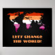Value Poster with the map of the world in the color of the lesbian pride flag, a design on a black background; the text 'Let's Change the World' is a template text and can be changed,