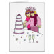 A cartoon of two brides dressed in quirky outfits, cutting a celebration cake.
