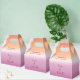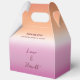 Lesbian wedding favor boxes for two brides featuring the lesbian pride flag gradient—soft pink blending to warm orange. The box displays "Thank You for being with us today!" with your names in elegant script on the gradient background. These thoughtful favor boxes are perfect for treats, candies, or small gifts, offering guests a sweet memento of your celebration. They coordinate beautifully with the rest of your wedding stationery, creating a cohesive look throughout. Perfect for two brides who want personalized favors that reflect their love and pride. All text elements are fully editable and ready to personalize. For customization support, please email: remidevandesigns@gmail.com LoveOutLoudStudio©.