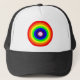 This lovely hat is designed for lesbians. It features a round rainbow with two little pink female symbols, standing side by side in the centre of the rainbow.