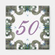 A arabesque design in green, blue and purple in the style of spanish azulejo tiles.