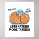 Less Haters More Taters Funny Potato Pun features a cute trio of potatoes being sweet taters. Perfect pun gift for family and friends who love cute tater puns.