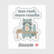 This “Less Rush, More Results” sticker stars a chill raccoon reminding us that slowing down is a strategy. With a burger, water bottle, and the sacred play button, this sticker is your daily permission slip to pause.