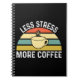 Anyone who loves coffee and knows the effect it has on their stress level will love this retro style coffee design on bags, mugs, stickers, T-shirts, pillows, and more featuring a steaming cup of coffee design with text that reads Less Stress More Coffee!