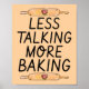 This funny food design features the words Less Talking More Baking. You can create with different flavors, desserts like cakes, and always find new recipes to try. The best part is enjoying the delicious results of your hard work!
