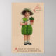 Young girl holding shamrocks in a 19th century St Patrick's Day greeting card.