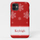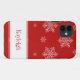 Whimsical and fun Let it Snow Case-mate Barely There iPhone 5 Case in bright red featuring a cascade of hand drawn snowflakes. This fun iPhone case will keep your phone protected with holiday or winter flair. Easy to customize, simply add the personalized text of your choosing.