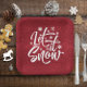 Brighten up your Christmas table with this cheerful paper plate design that features white 'Let it Snow' typography, sprinkled with snowflakes on a solid red background texture. Search ID951 to see other products with this design.
