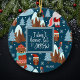 Add a cute seasonal touch to your holiday tree decor with this adorable custom blue and white Christmas ornament. Ornament has a pattern of a festive brown bear ice skating, an owl wearing a Santa hat and glasses, a bird on a snowy mountain, a bunny playing a trumpet, and Christmas trees in the snow. Center text says I don't know let it snow. Add your family last name on the front and the year on the back for a personalized touch.