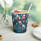 Add a cute seasonal touch to your holiday kitchen dining table decor with this adorable custom blue and white Christmas paper cup. Paper cup has a pattern of a festive brown bear ice skating, an owl wearing a Santa hat and glasses, a bird on a snowy mountain, a bunny playing a trumpet, and Christmas trees in the snow. Center text says I don't know let it snow. Add your family last name for a personalized touch.