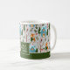 Add a cute seasonal touch to your holiday kitchen decor with this adorable custom green and white Christmas coffee mug. Mug has a pattern of a festive reindeer in a cozy sweater, a bird, houses, holly berries, and Christmas trees in the snow. Center text says I don't know let it snow. Add your family last name for a personalized touch.