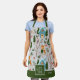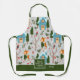 Add a cute seasonal touch to your holiday baking and cooking with this adorable custom green and white kitchen apron. Apron has a pattern of a festive reindeer in a cozy sweater, a bird, houses, holly berries, and Christmas trees in the snow. Center text says I don't know let it snow. Add your family last name or a first name for a personalized touch.
