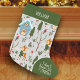 Let it Snow Cute Reindeer Pattern with Name Green Small Christmas Stocking