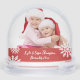 This is a fun and festive snow globe that is decorated with white snowflakes on a red background. It is easy to customize with your own photos, name and date. One side of the snow globe is accented with your special photo and the saying, Let it Snow; while the other side is decorated with the same photo or different photo, and names and date, (or your own special message if preferred). This makes a wonderful gift for the holidays, or the start of a family tradition. If help is needed customizing this item, just contact us at prettyfancyinvites@gmail.com.